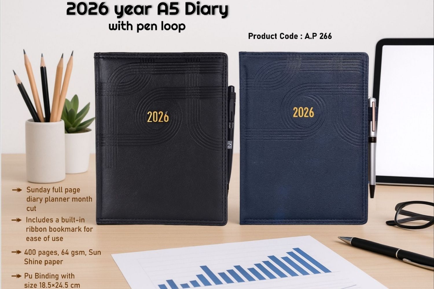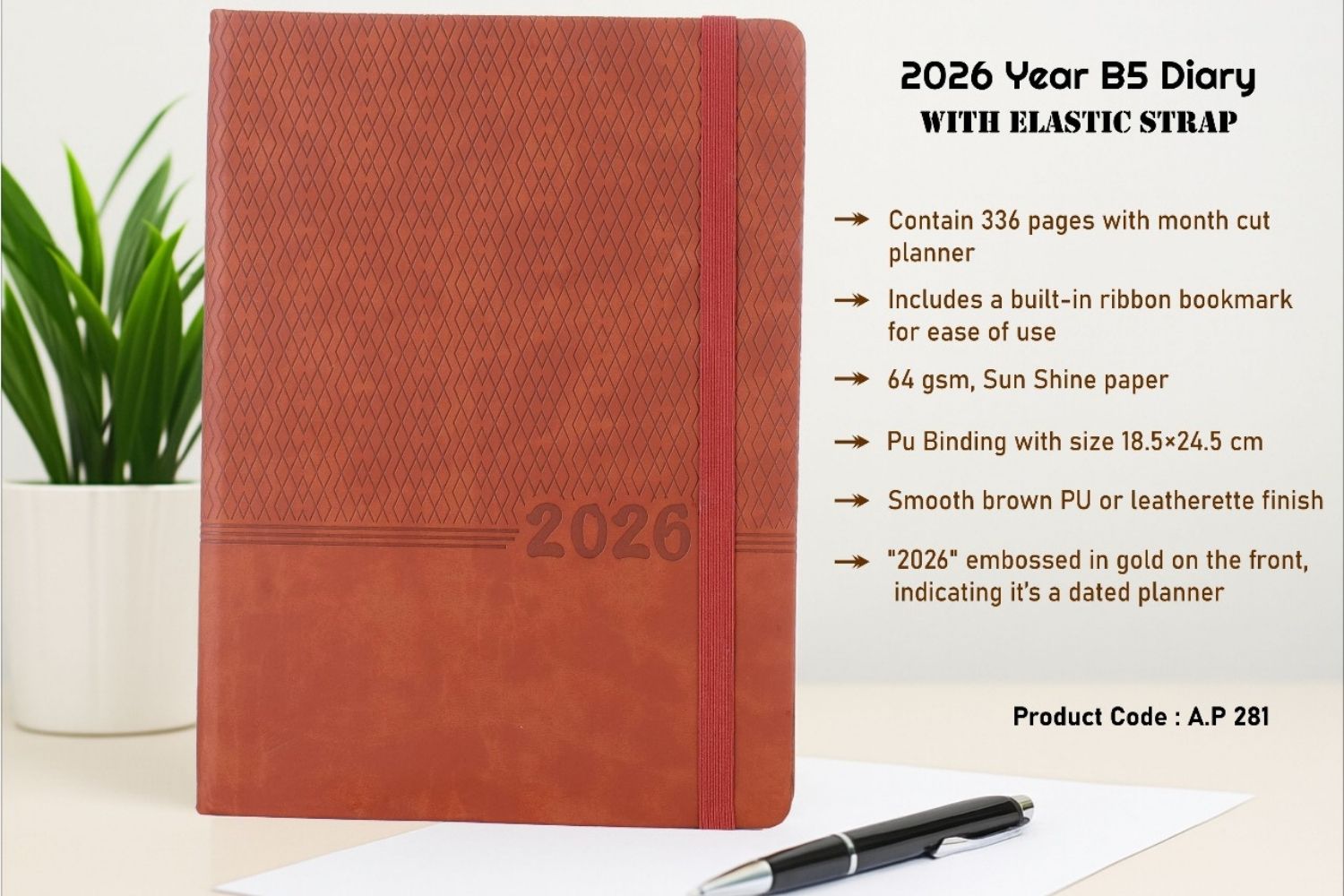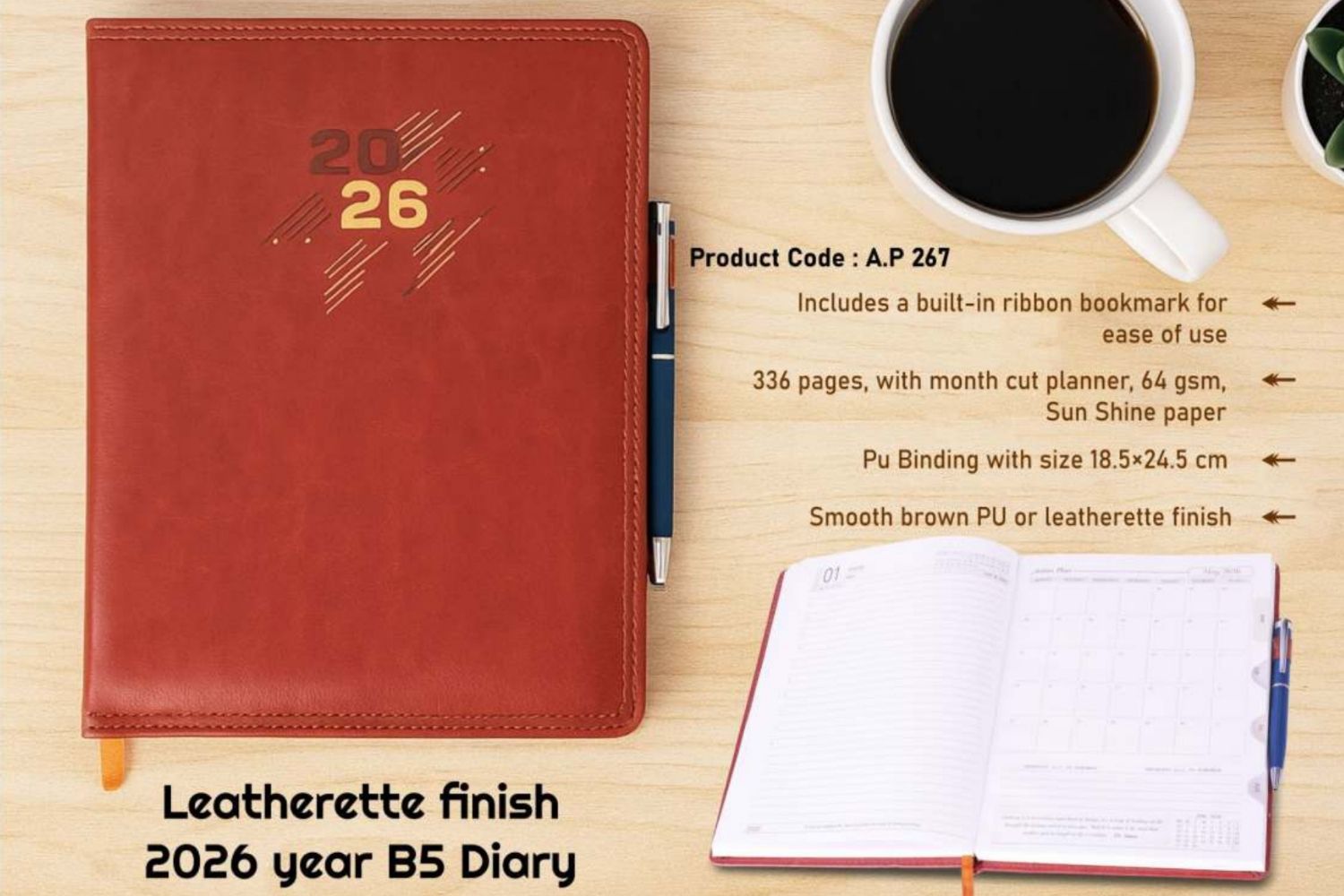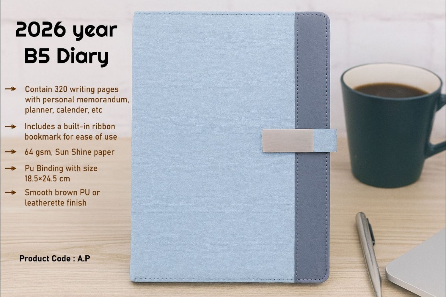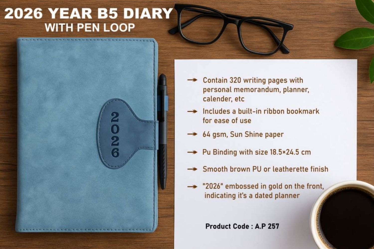 Step into 2026 with Aap Jee Diaries’ latest range of high-quality diaries, crafted for professionals, corporates, and stationery lovers alike. Our Diaries 2026 collection offers a perfect blend of elegance and utility, available in various formats including executive diaries, pocket diaries, planners, and customized corporate diaries. Each diary has premium paper, durable covers, and sleek layouts to enhance writing comfort and long-term usability. Whether you prefer classic leather-bound styles or modern minimalistic designs, Aap Jee Diaries ensures a wide variety to suit your taste and brand needs. We also offer logo embossing and personalization options that are ideal for gifts and promotions. As a leading diary manufacturer in Delhi NCR, we focus on quality, creativity, and timely delivery. Choose Aap Jee Diaries to make 2026 your most organized and inspiring year yet.