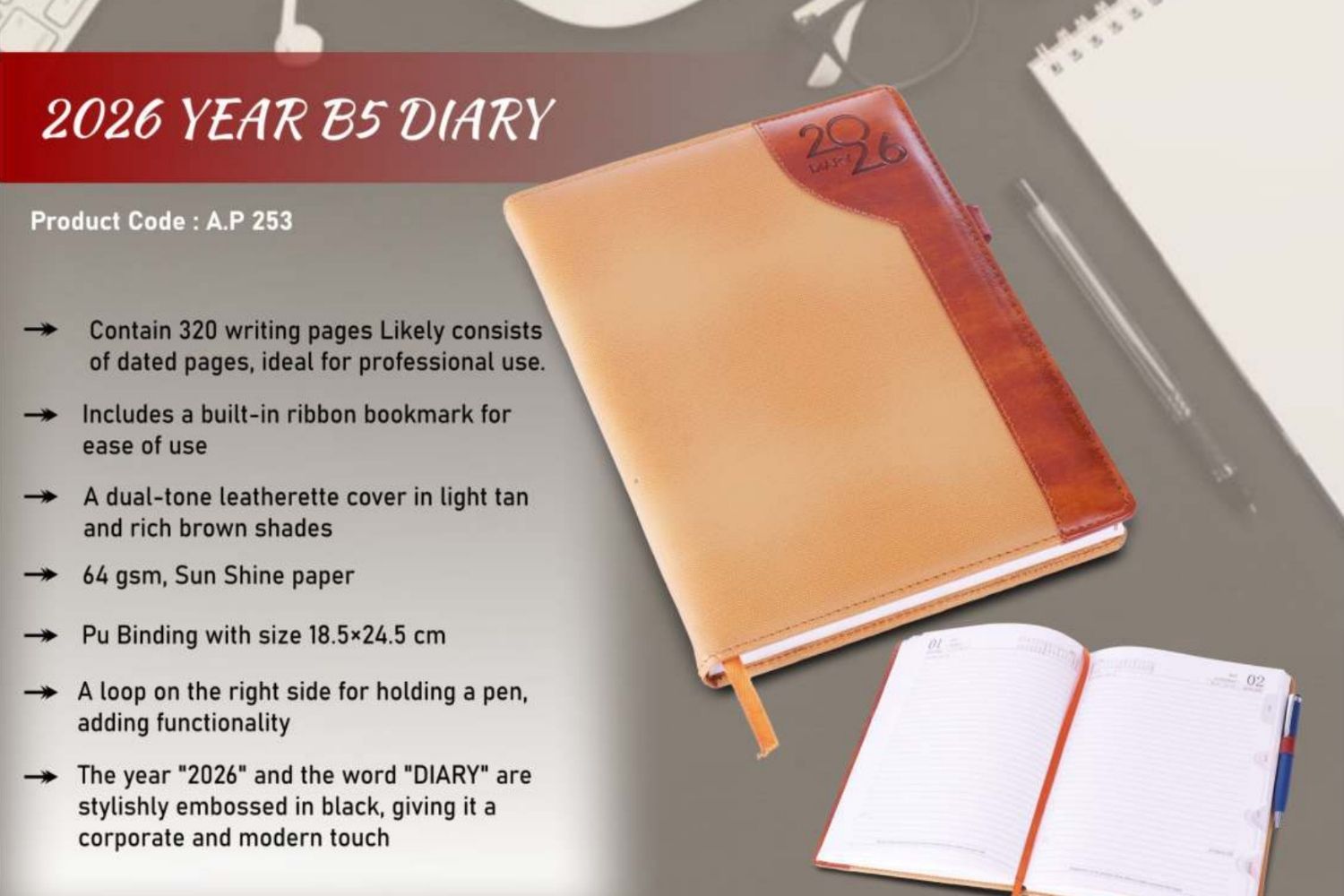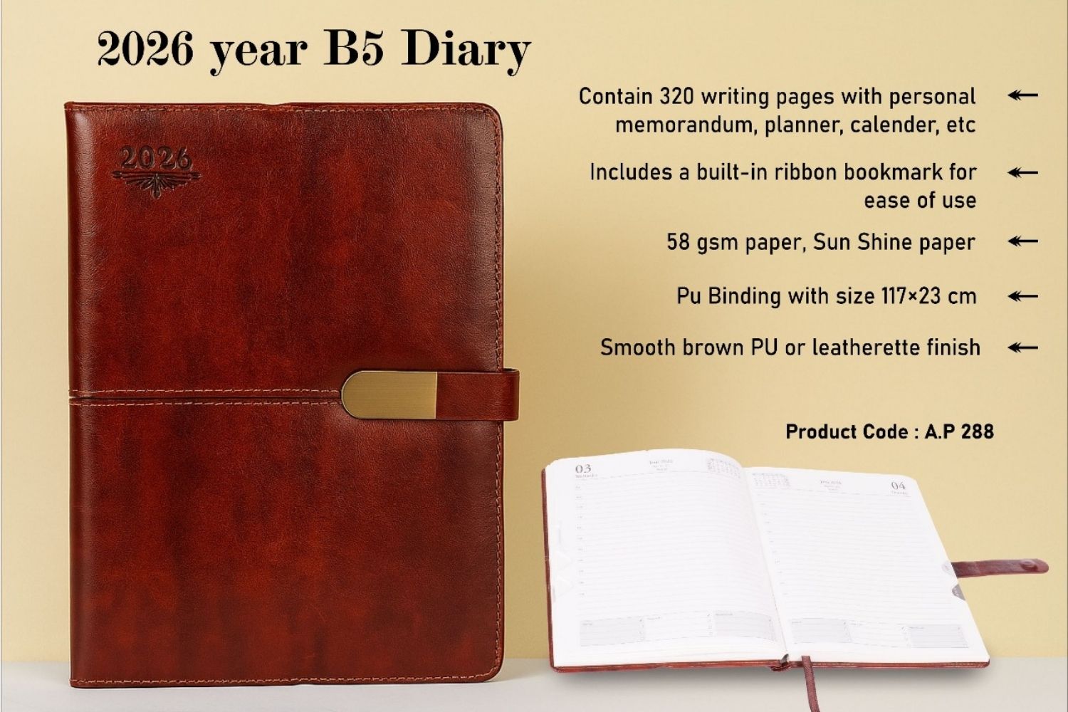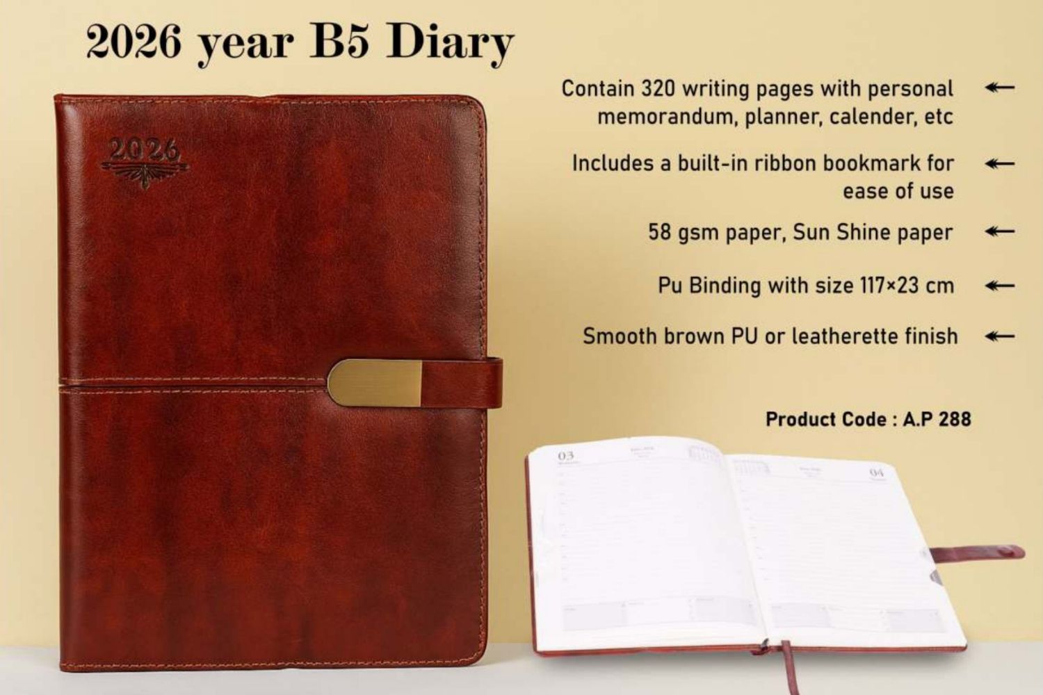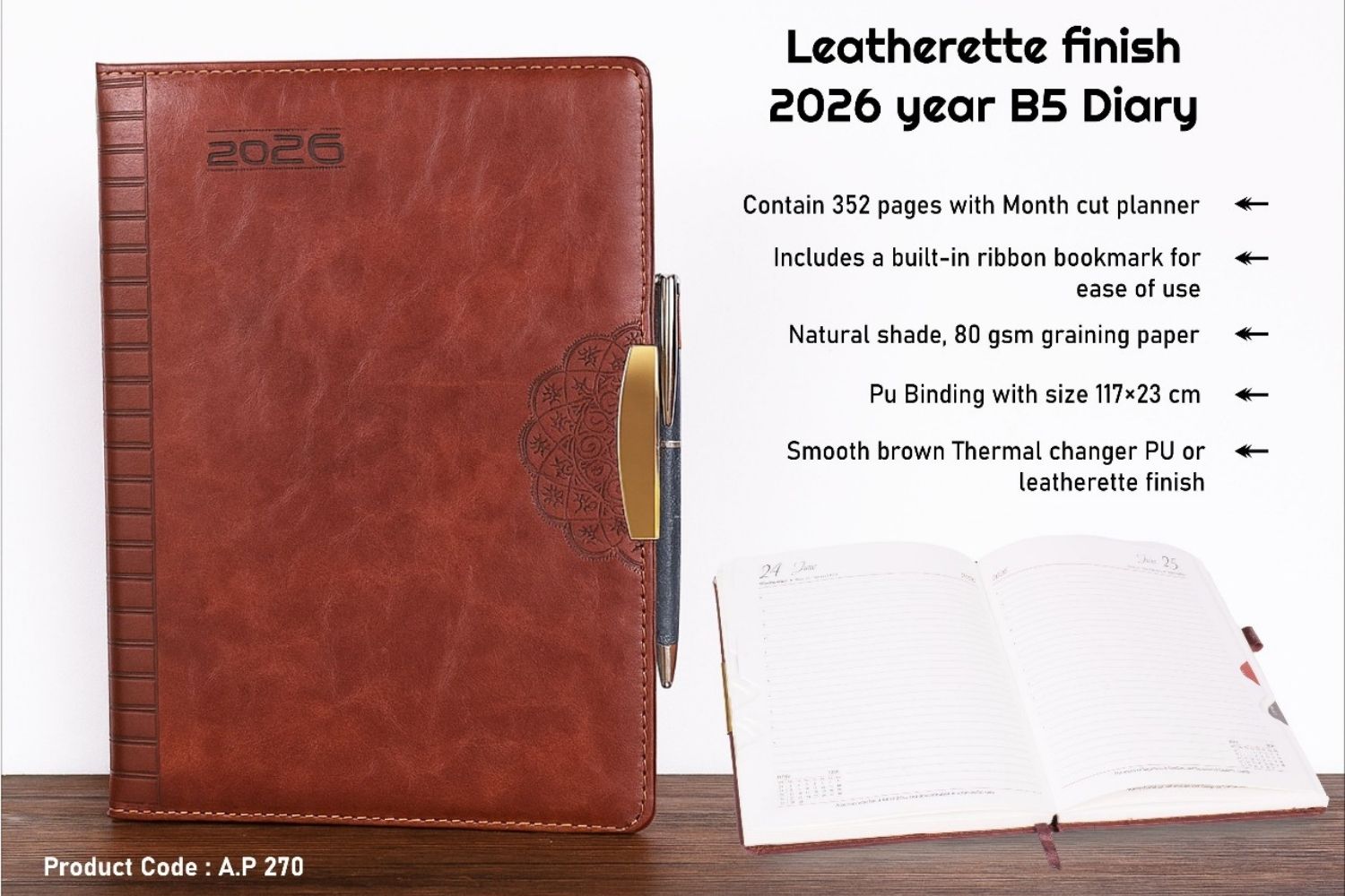 Step into 2026 with Aap Jee Diaries’ latest range of high-quality diaries, crafted for professionals, corporates, and stationery lovers alike. Our Diaries 2026 collection offers a perfect blend of elegance and utility, available in various formats including executive diaries, pocket diaries, planners, and customized corporate diaries. Each diary has premium paper, durable covers, and sleek layouts to enhance writing comfort and long-term usability. Whether you prefer classic leather-bound styles or modern minimalistic designs, Aap Jee Diaries ensures a wide variety to suit your taste and brand needs. We also offer logo embossing and personalization options that are ideal for gifts and promotions. As a leading diary manufacturer in Delhi NCR, we focus on quality, creativity, and timely delivery. Choose Aap Jee Diaries to make 2026 your most organized and inspiring year yet.