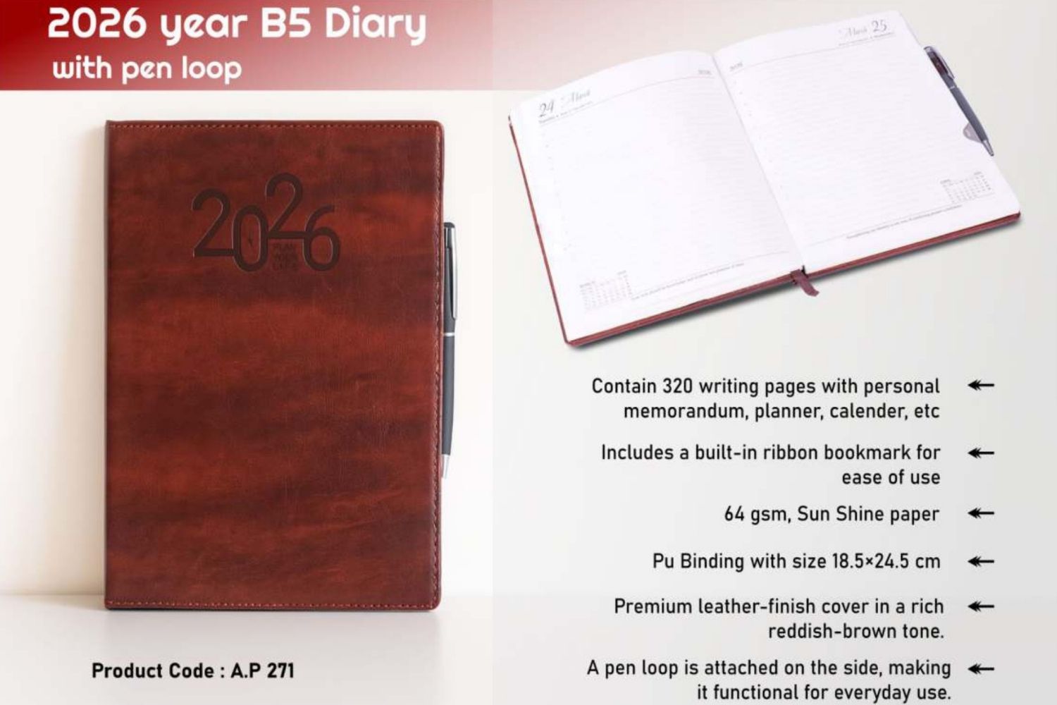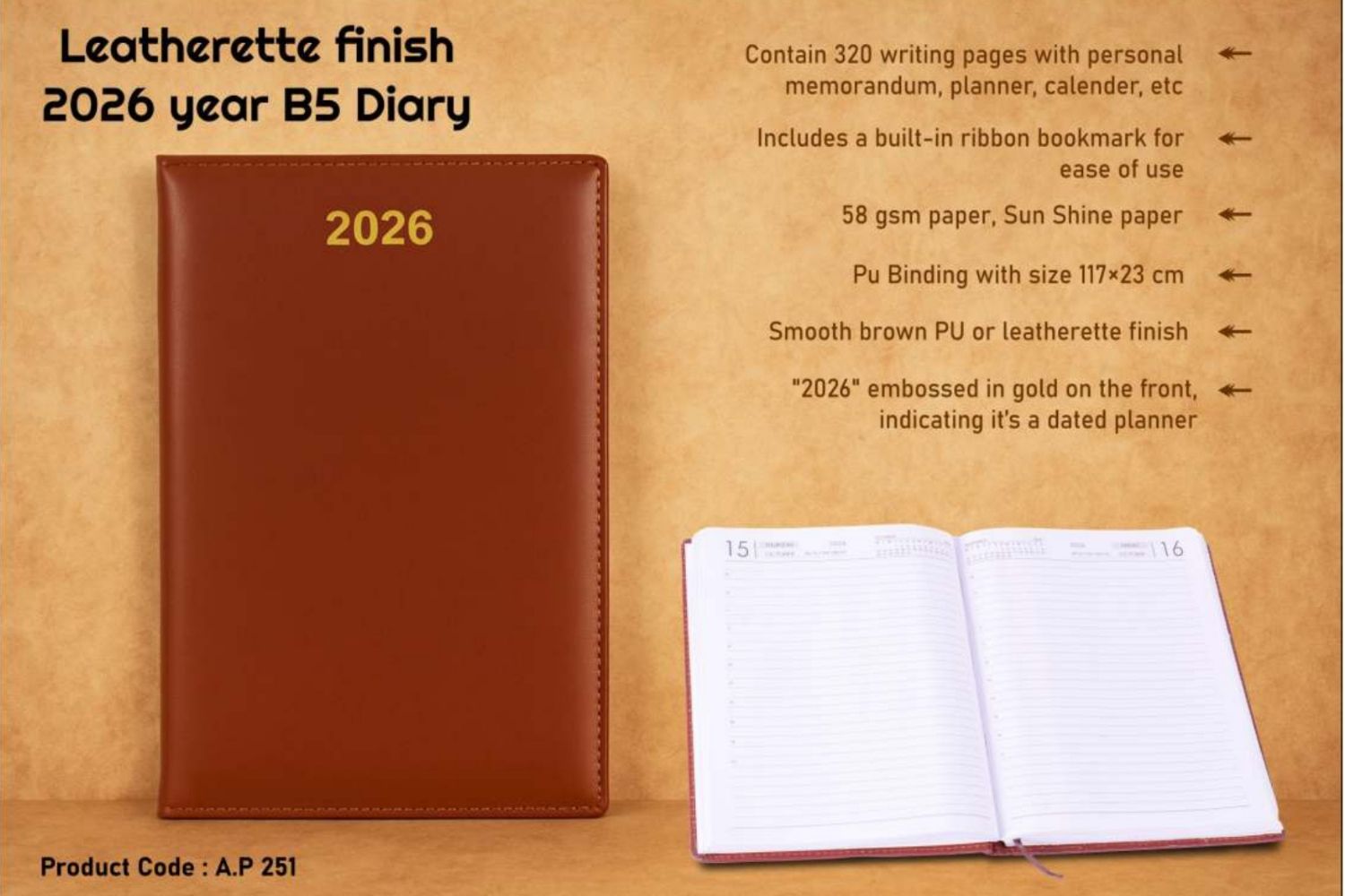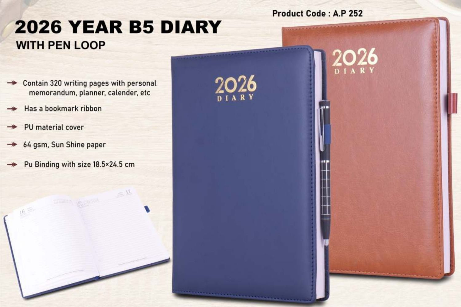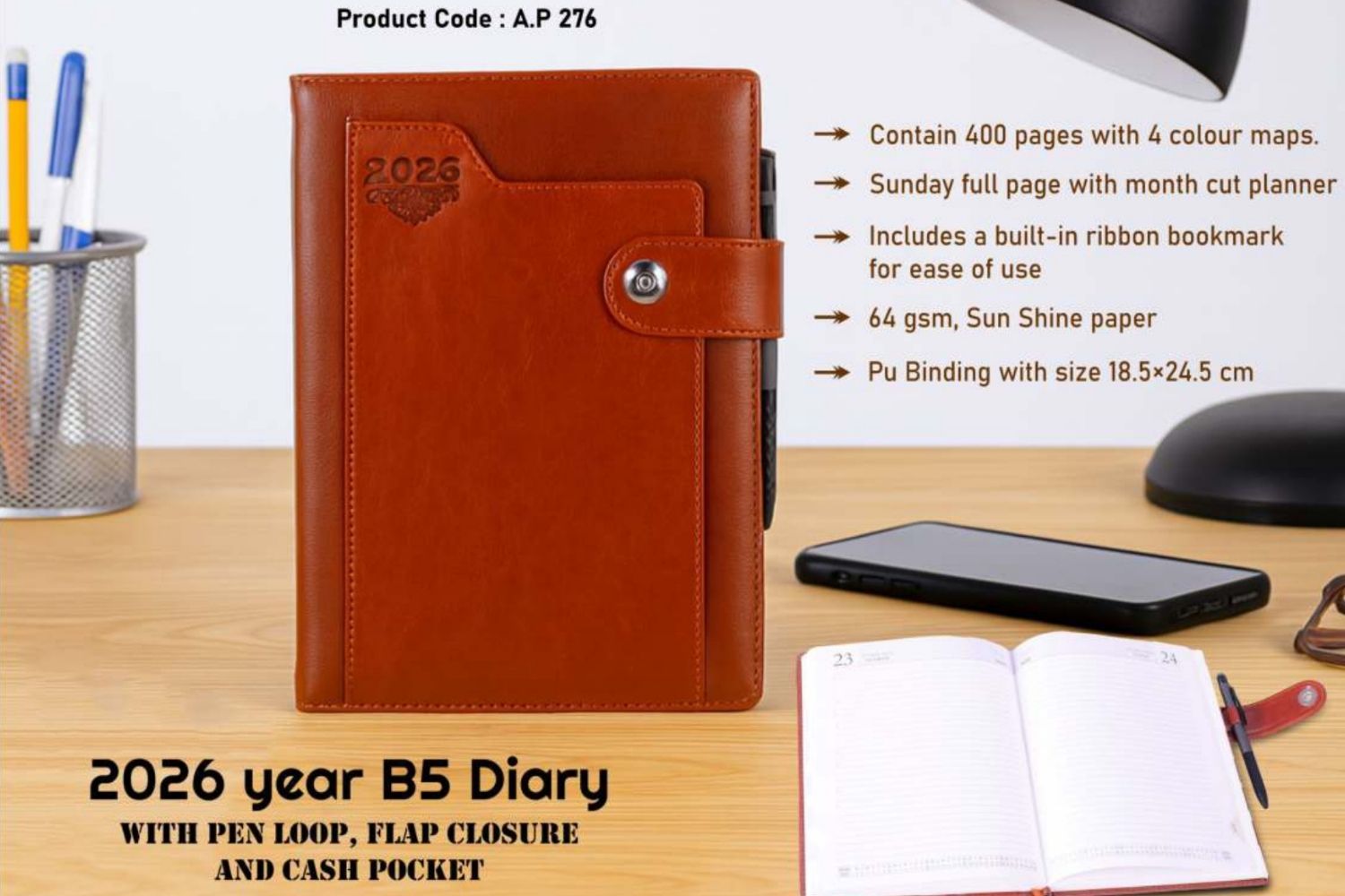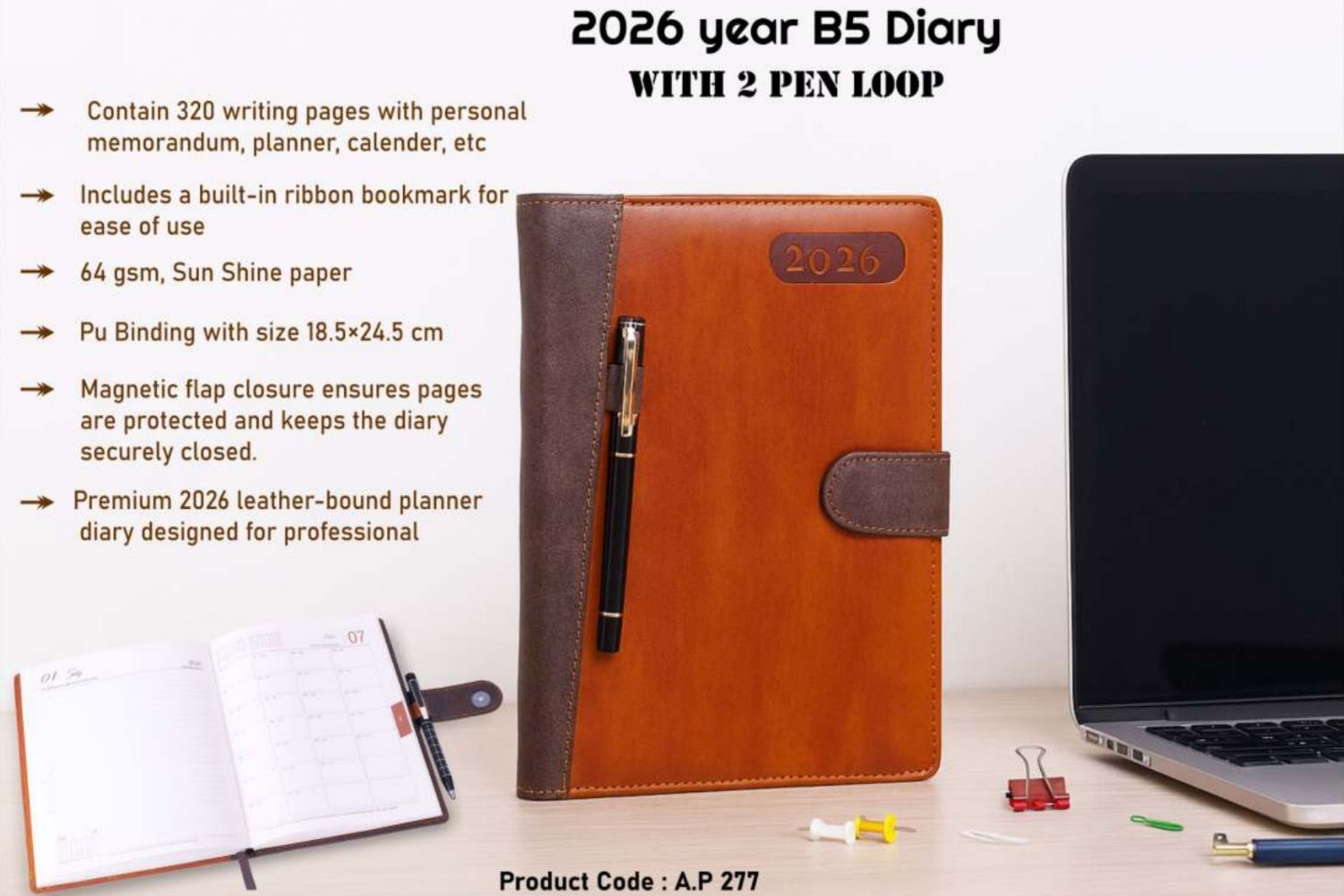 Step into 2026 with Aap Jee Diaries’ latest range of high-quality diaries, crafted for professionals, corporates, and stationery lovers alike. Our Diaries 2026 collection offers a perfect blend of elegance and utility, available in various formats including executive diaries, pocket diaries, planners, and customized corporate diaries. Each diary has premium paper, durable covers, and sleek layouts to enhance writing comfort and long-term usability. Whether you prefer classic leather-bound styles or modern minimalistic designs, Aap Jee Diaries ensures a wide variety to suit your taste and brand needs. We also offer logo embossing and personalization options that are ideal for gifts and promotions. As a leading diary manufacturer in Delhi NCR, we focus on quality, creativity, and timely delivery. Choose Aap Jee Diaries to make 2026 your most organized and inspiring year yet.