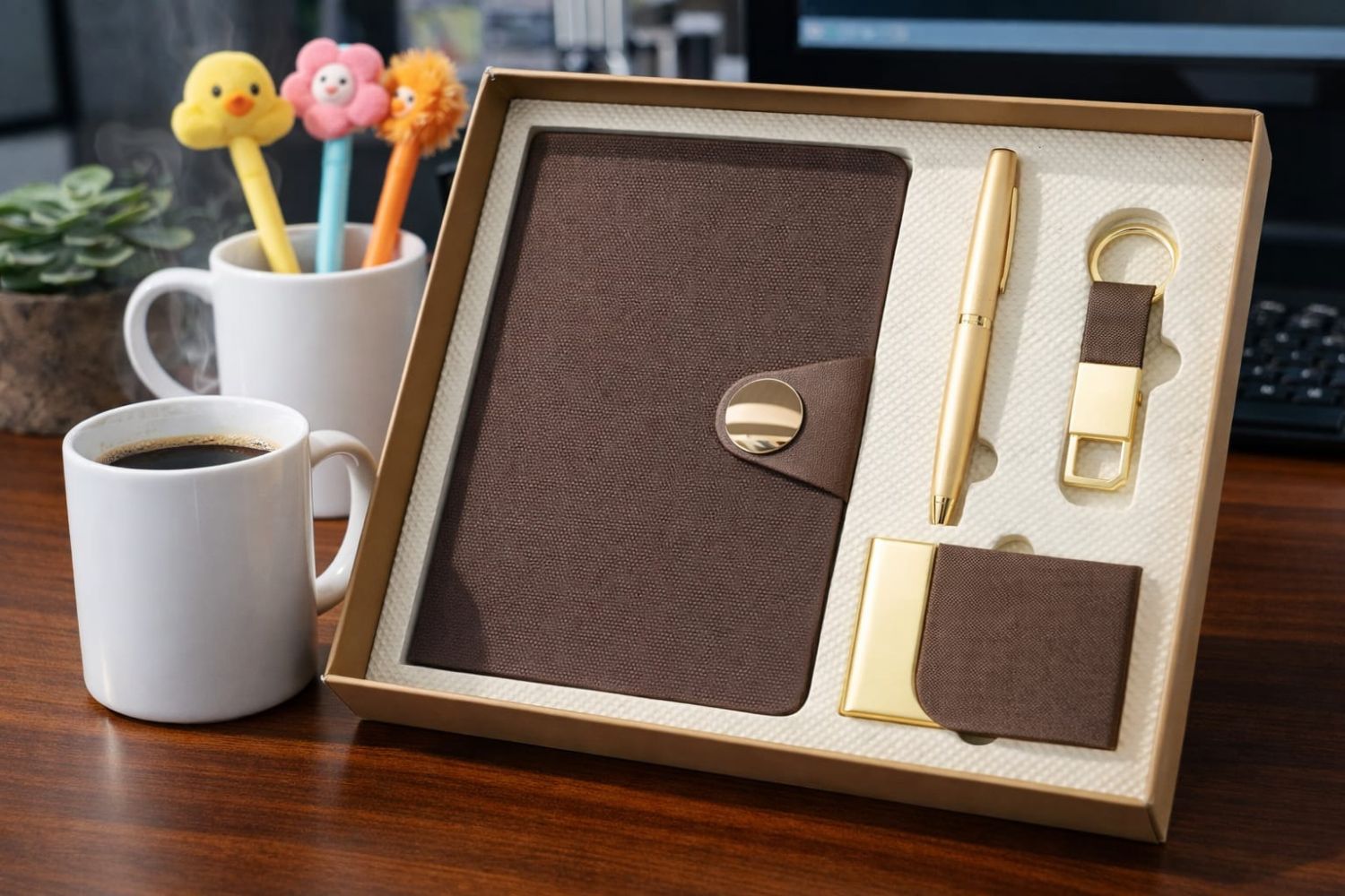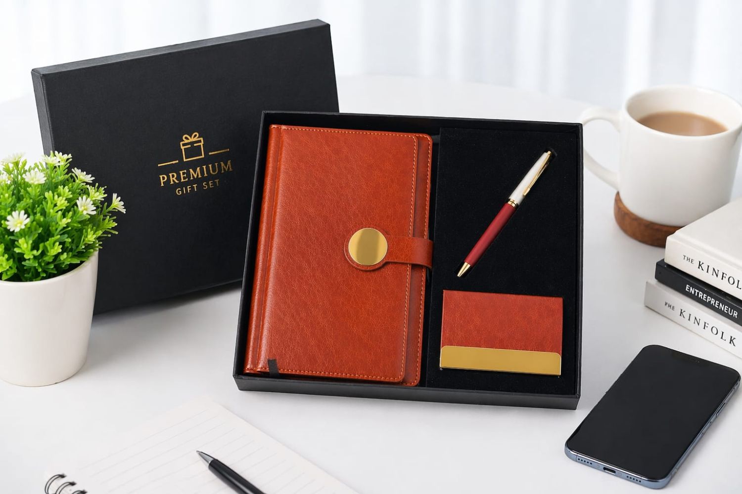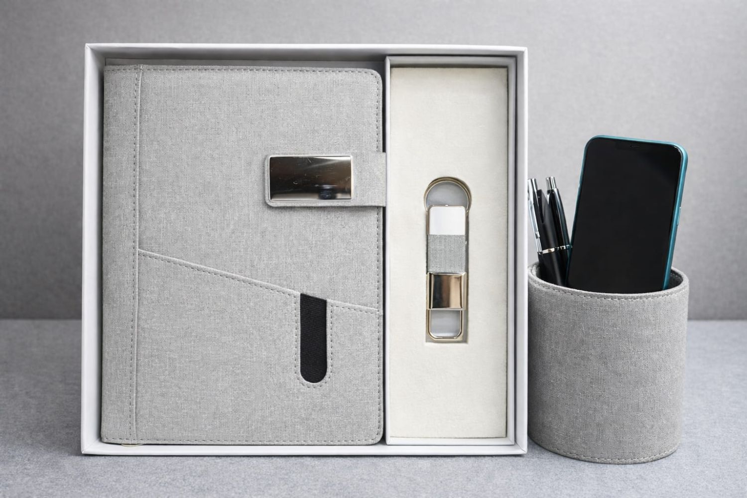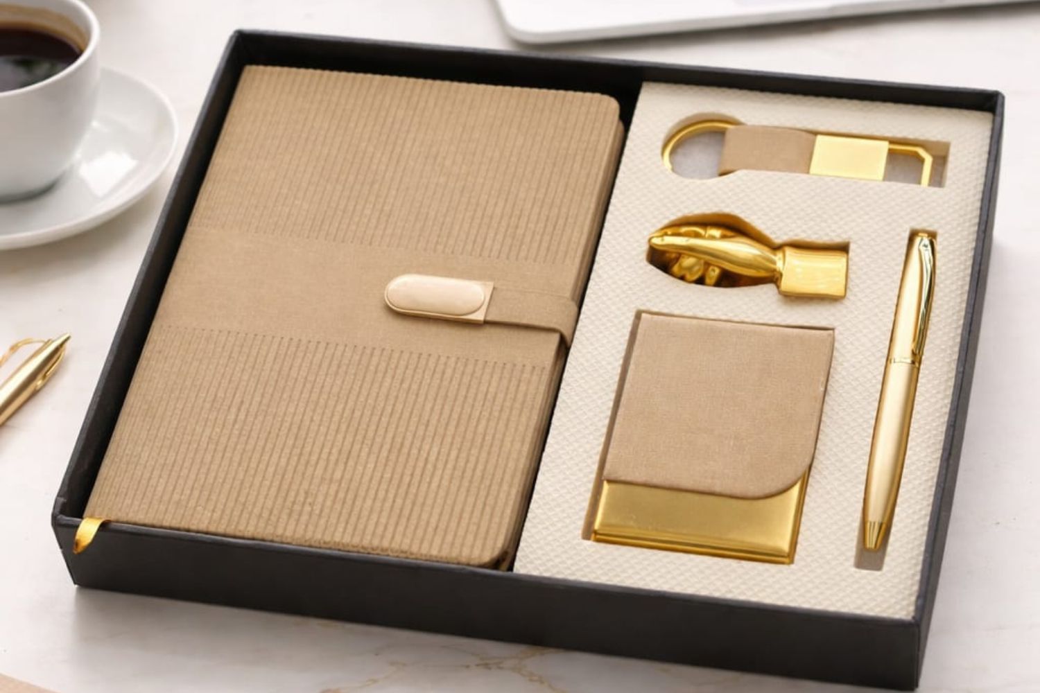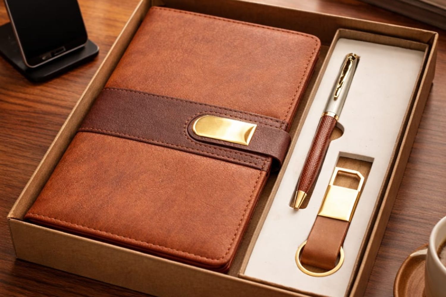 Aap Jee Diaries offers an exclusive range of premium gift sets that blend elegance with functionality—perfect for corporate giveaways, festive gifting, and personalized presents. As a trusted gift sets manufacturer in Delhi NCR, we specialize in thoughtfully designed combinations that include diaries, notebooks, pens, organizers, and accessories, all crafted with quality and style. Whether you want to impress clients, appreciate employees, or celebrate special occasions, our gift sets can be customized to suit your brand identity or personal preferences. With premium packaging and attention to detail, Aap Jee Diaries ensures every gift leaves a lasting impression. Choose from classic leather-bound sets, eco-friendly options, or sleek contemporary combos to match any requirement. Experience unmatched craftsmanship and dependable service, making gifting a seamless and memorable experience.